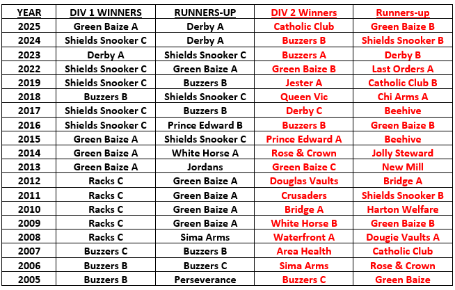 Shields Snooker / Ralphy Liddle CUPS + Shaun Jarvis Challenge