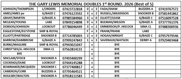 Shields Snooker / Ralphy Liddle CUPS + Shaun Jarvis Challenge